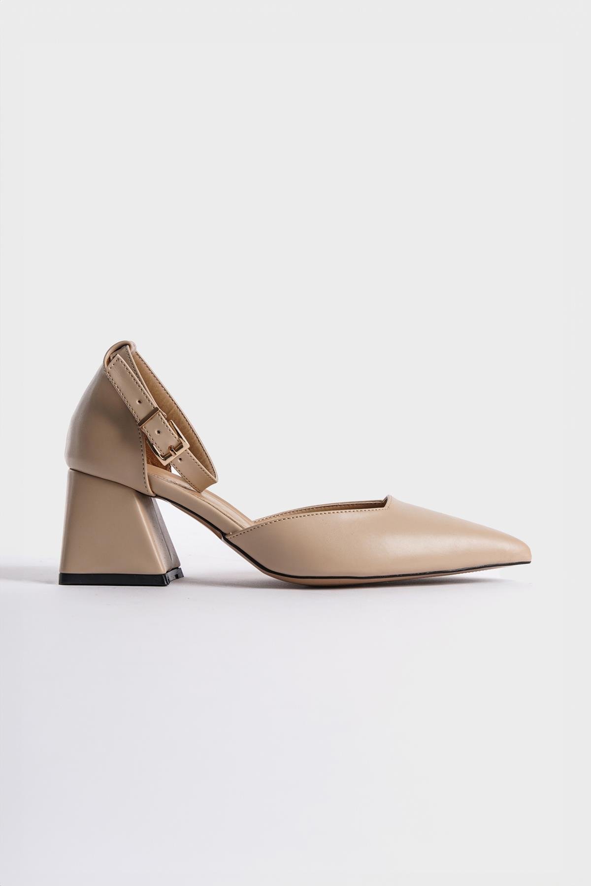 Capone Ankle Strap Pointed Toe Thick Heeled Mid Heeled Women Beige Shoes (627-F105-FDG-01-0001)