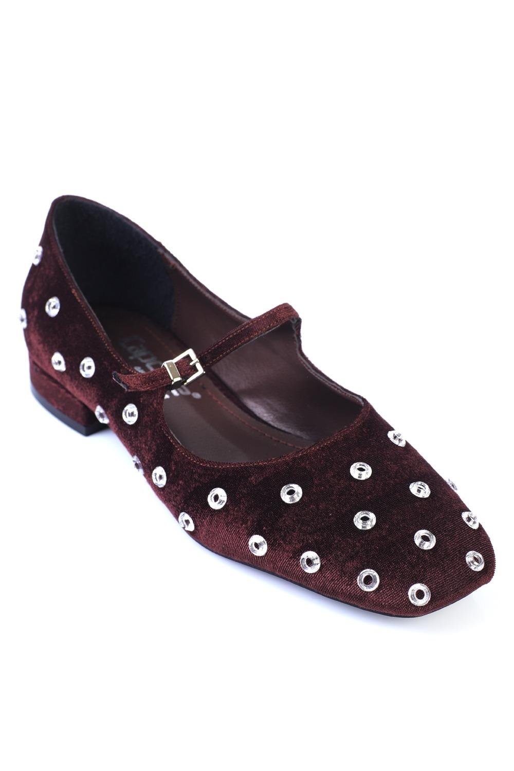 Capone Blunt Toe Studded Buckled Women Brown Ballerinas (346-8351-FDG-01-0001)