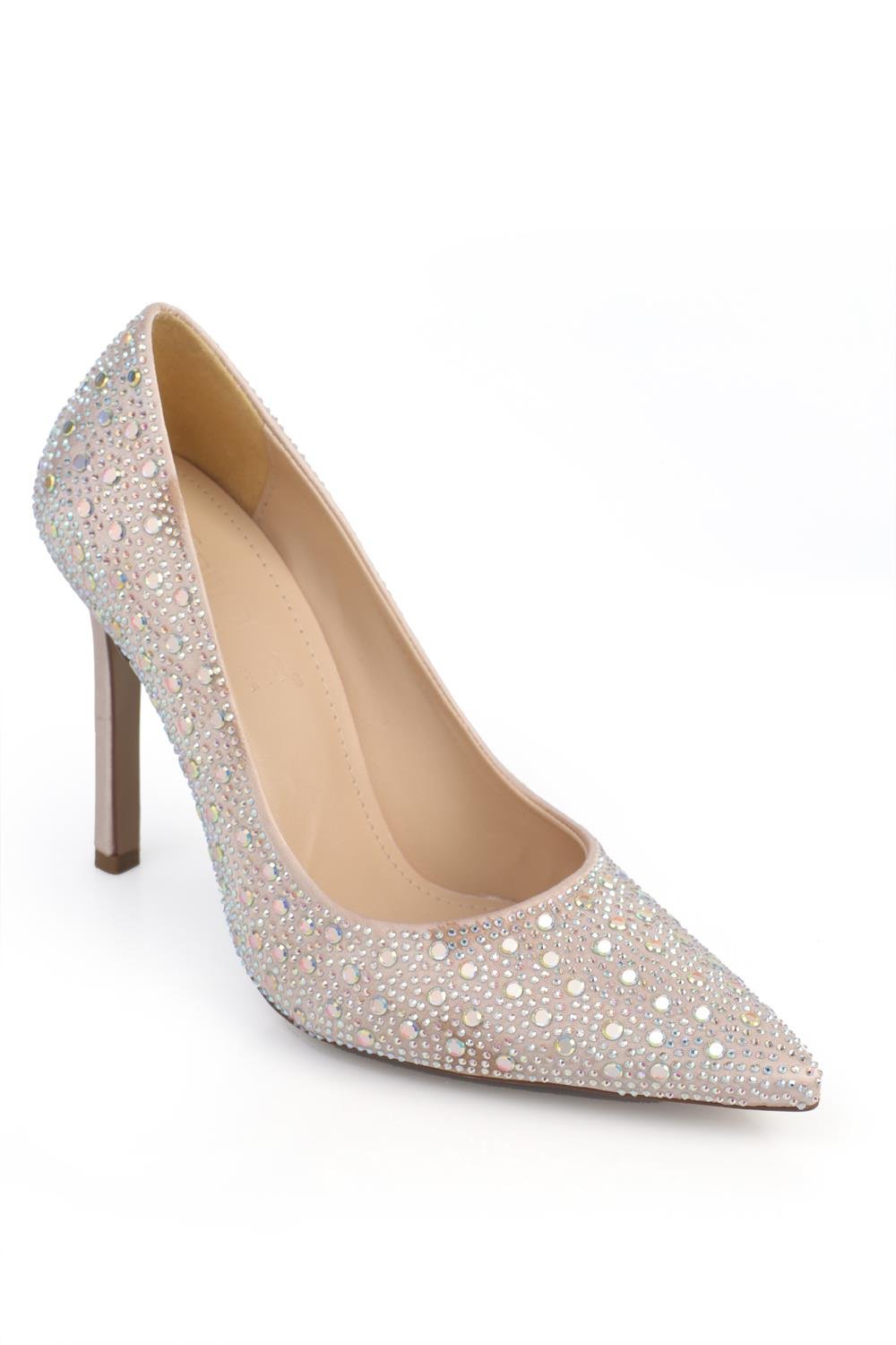 Capone Crystal Embellished High Heeled Satin Women Beige Stiletto (505-8512-FDG-01-0001)
