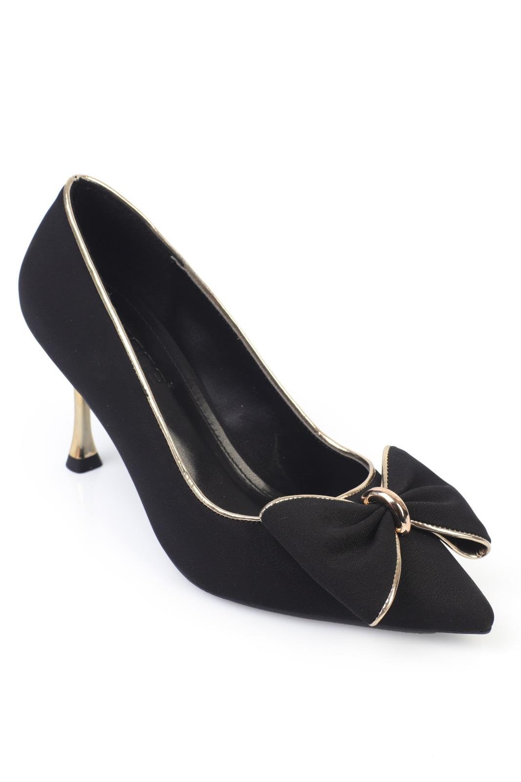 Capone Metal Mid-Heeled Bow Tie Satin Women Satin Black Shoes (505-9245-FDG-01-0001)