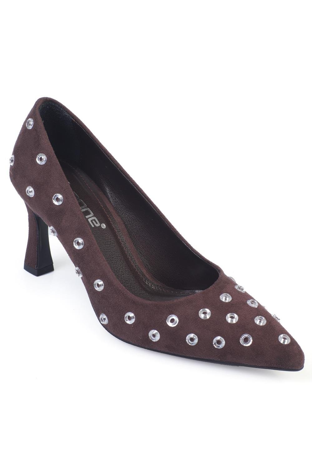 Capone Mid-Heeled Studded Velvet Women Brown Stiletto (346-8779-FDG-01-0001)