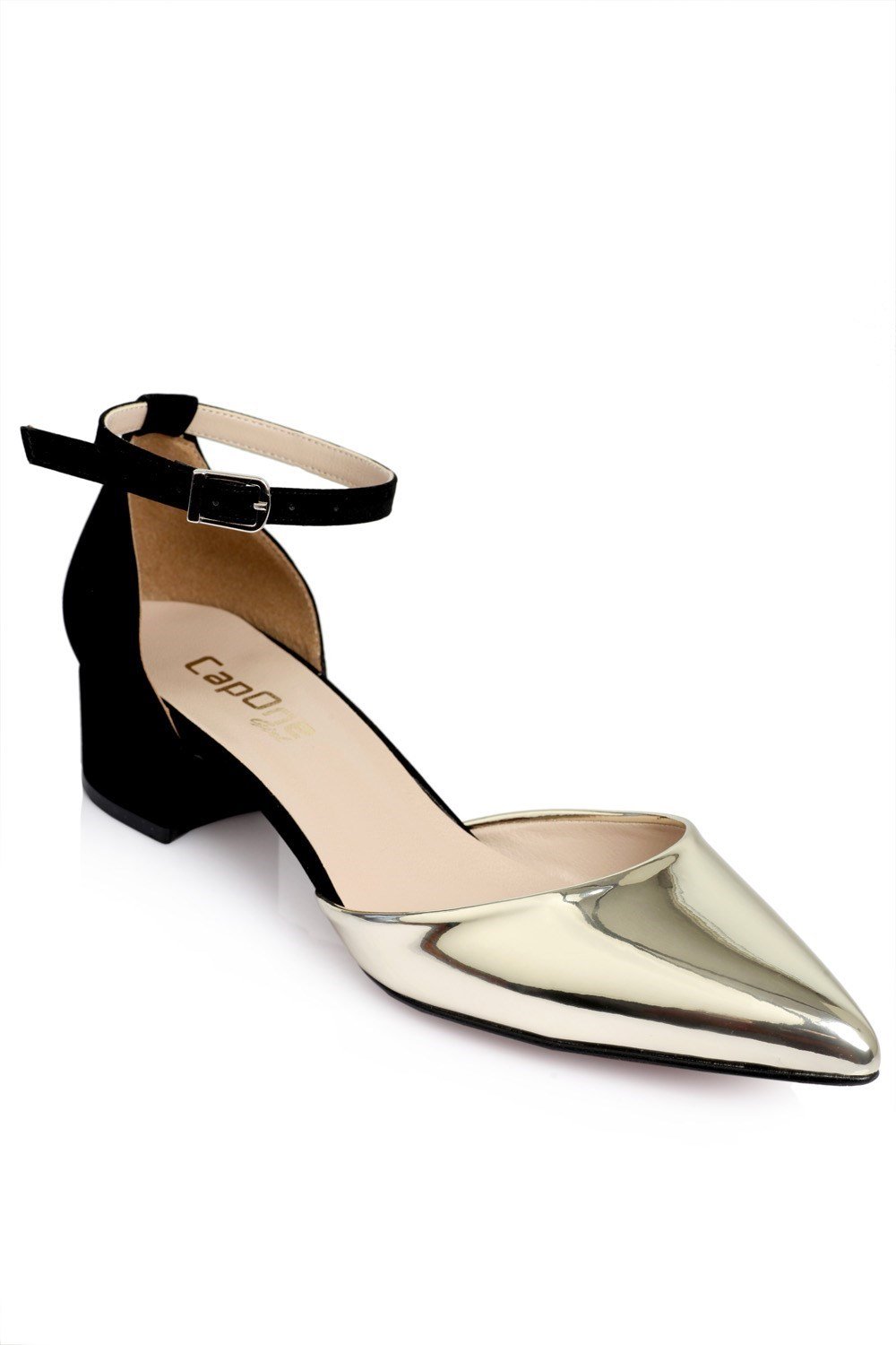 Capone Giselle Big Size Ankle Strap Cuban Heel Women Gold Shoes