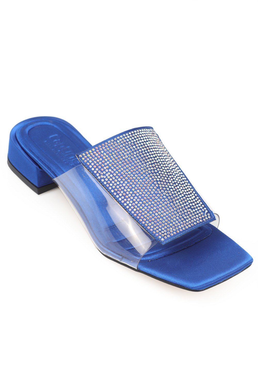 Capone Low Heel Transparent Crystal Embellished Band Satin Woman Sandals