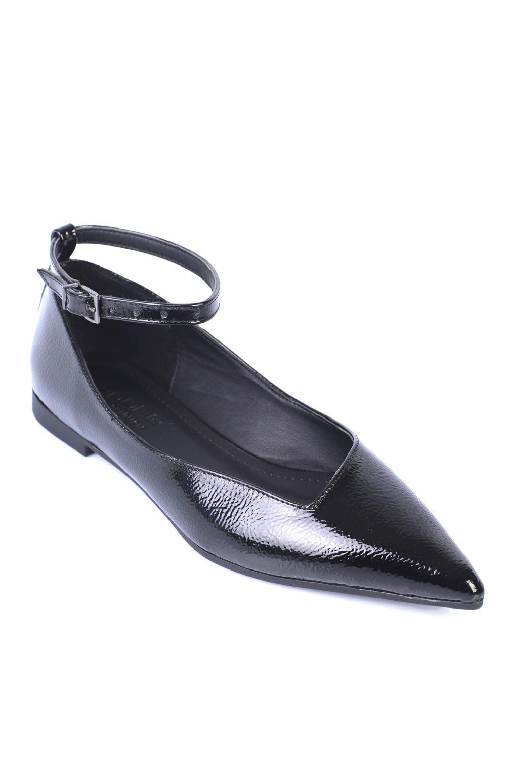 Capone Outfitters F93 Women Black Crinkle Patent Ballerina