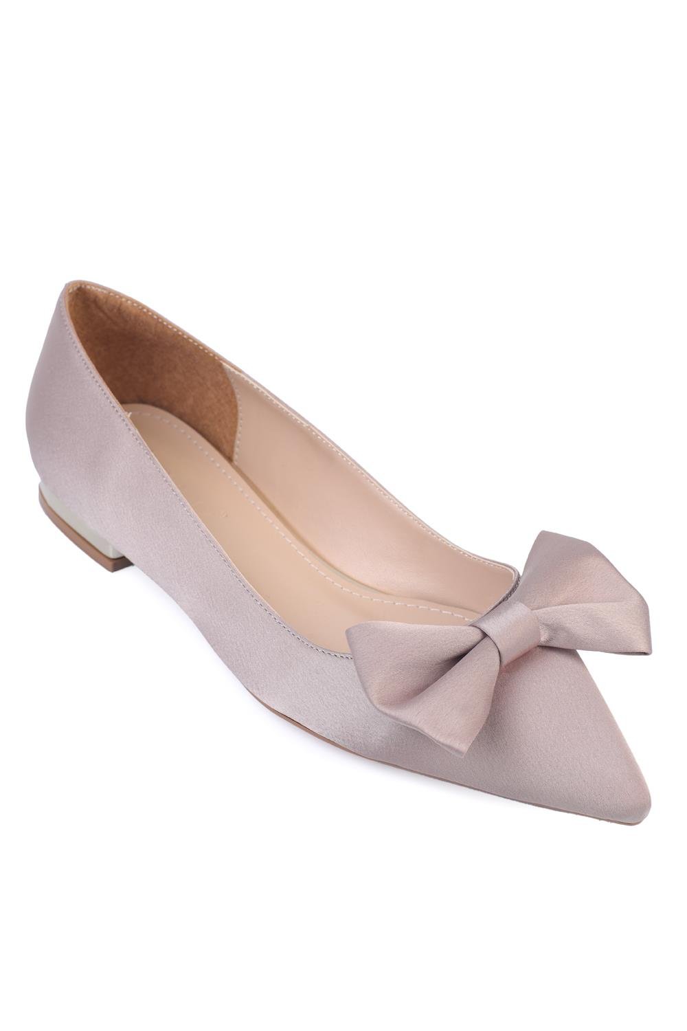 Capone Pointed Toe Short Heeled Bow Satin Women Mink Ballerinas (505-8848-FDG-01-0001)